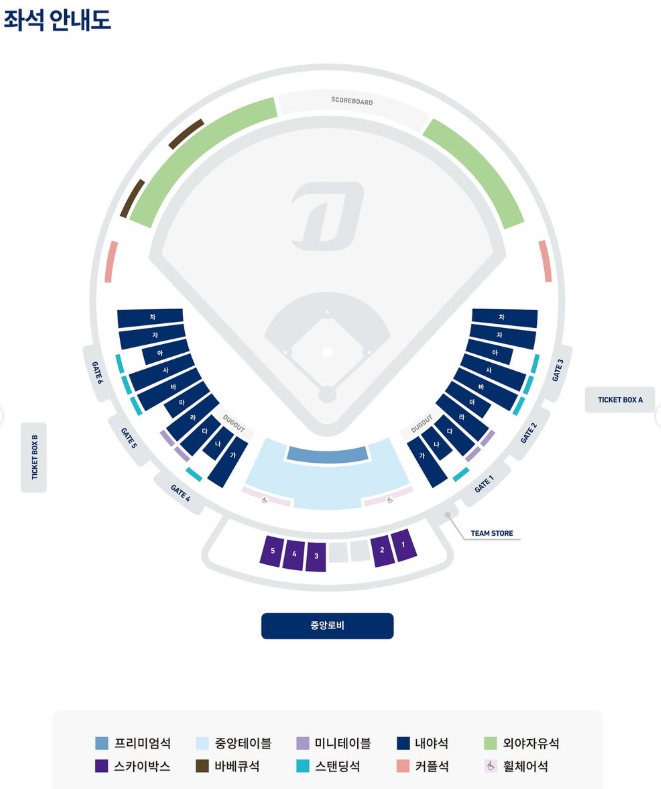 경기 시작 2시간 전부터 운영되며, 티켓박스 A는 예매 티켓 교환, B는 현장 구매 전용입니다.