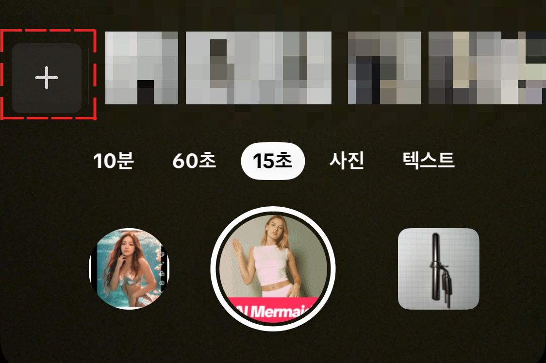 하단 왼쪽의 “+” 버튼을 눌러 갤러리에서 원하는 사진을 선택합니다.